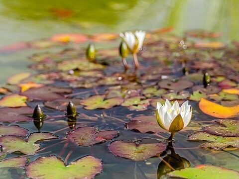 Des fleurs, des nénuphars, la nature, la mare de Bonheur-ville.